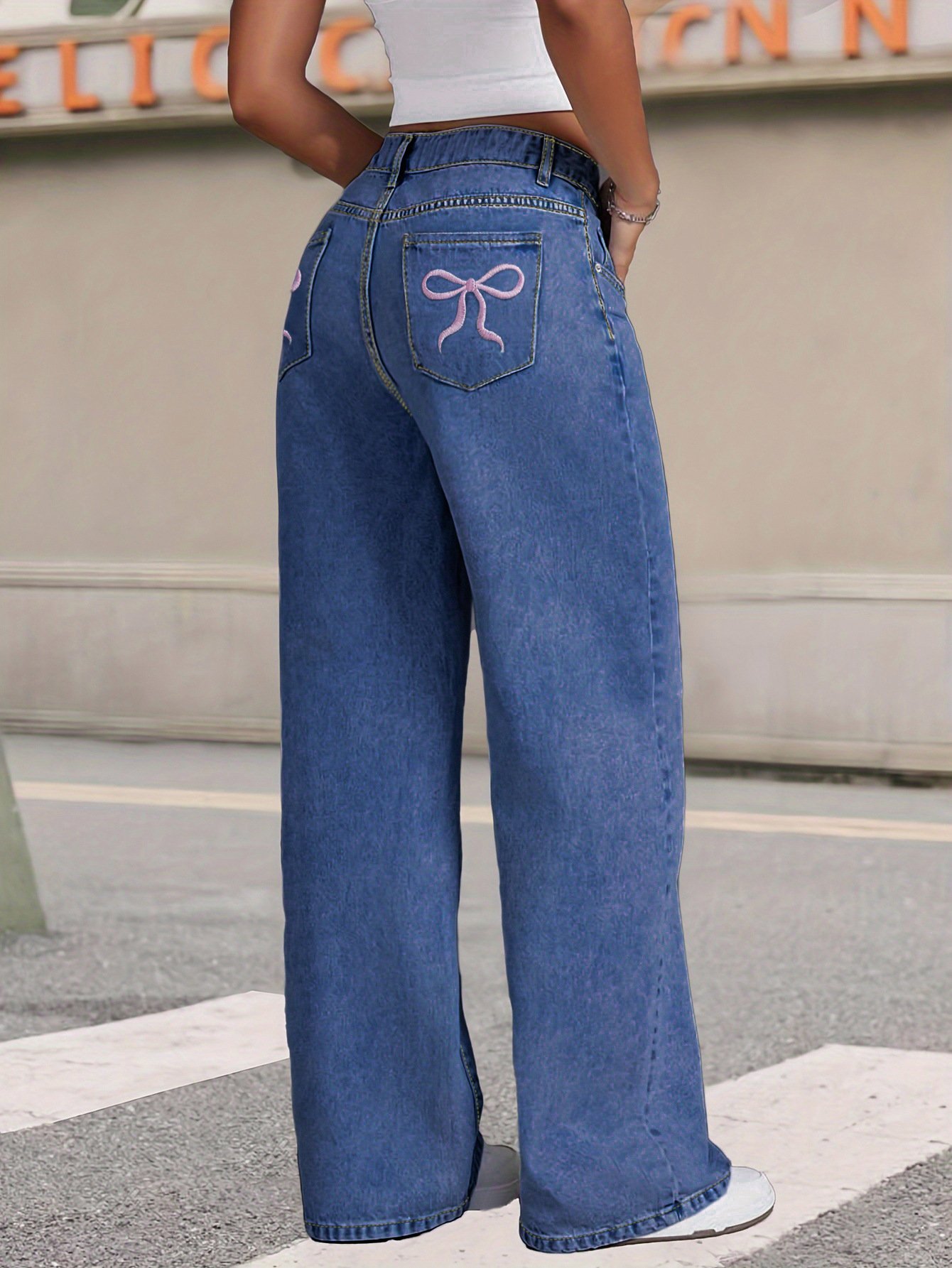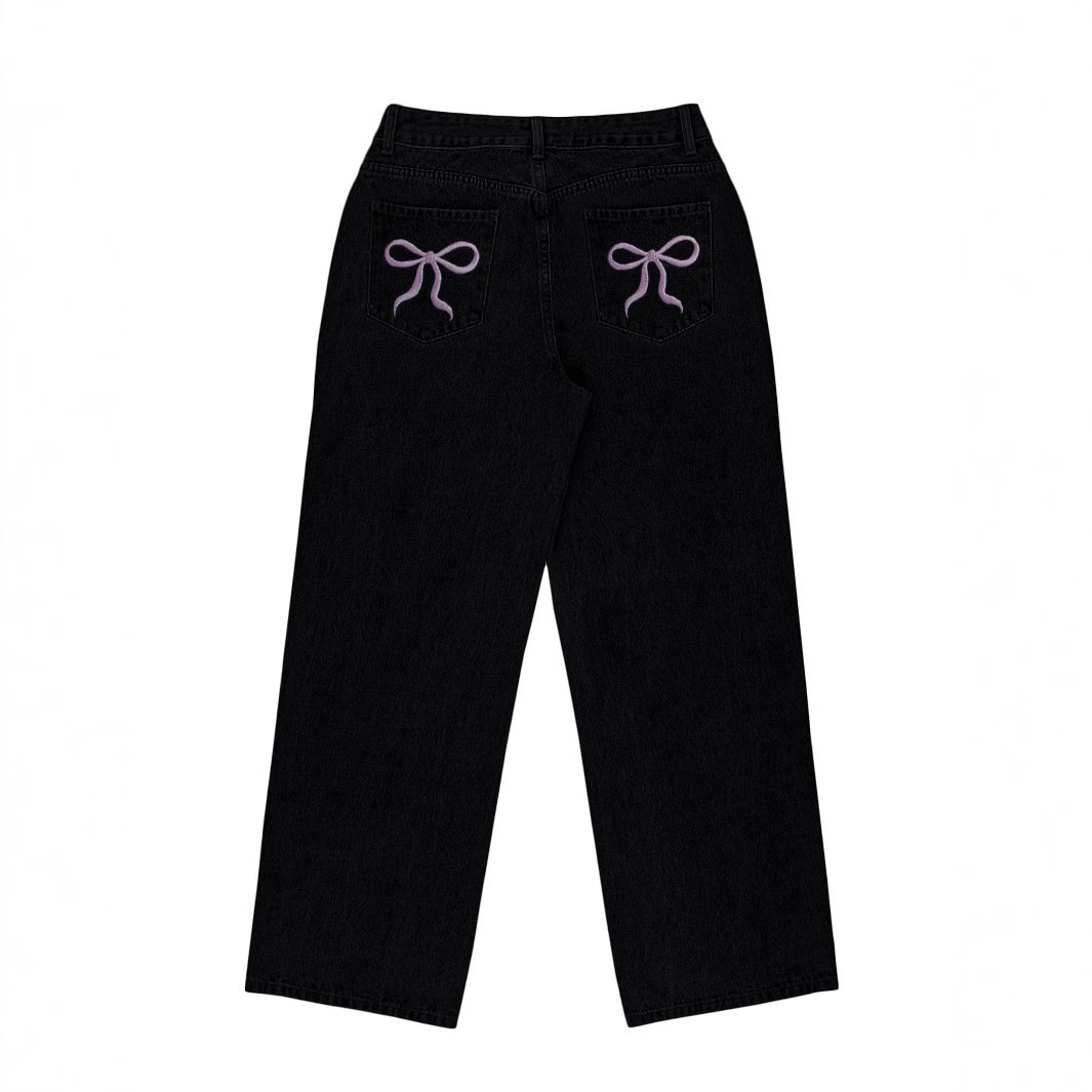 Blugi casual lejeri la modă, brodați cu fundă