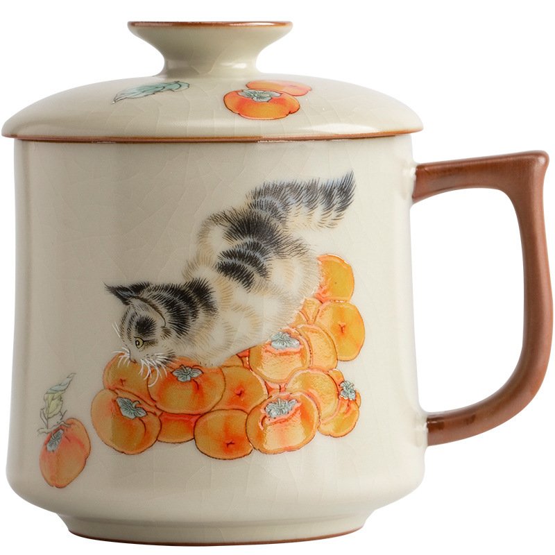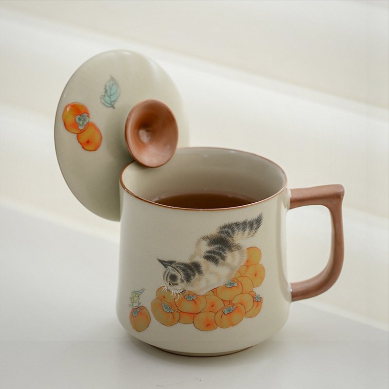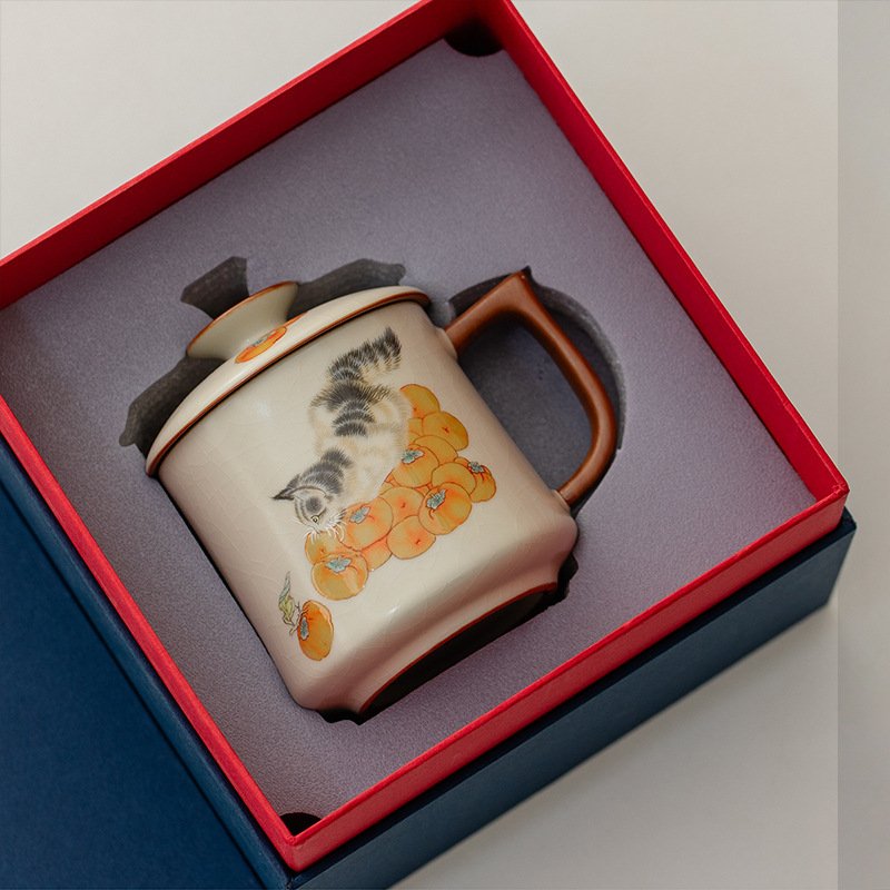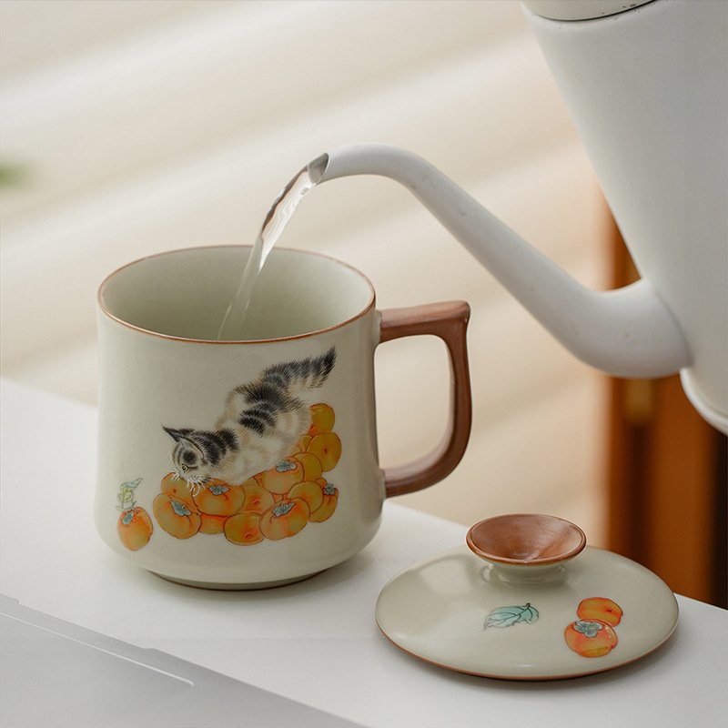 Culoare: Cana de apă Yan Song bej, pisică curmală, cană de apă Yan Song bej, pisică curmală, cană de apă Ru ware Yan Song bej [cutie cadou]