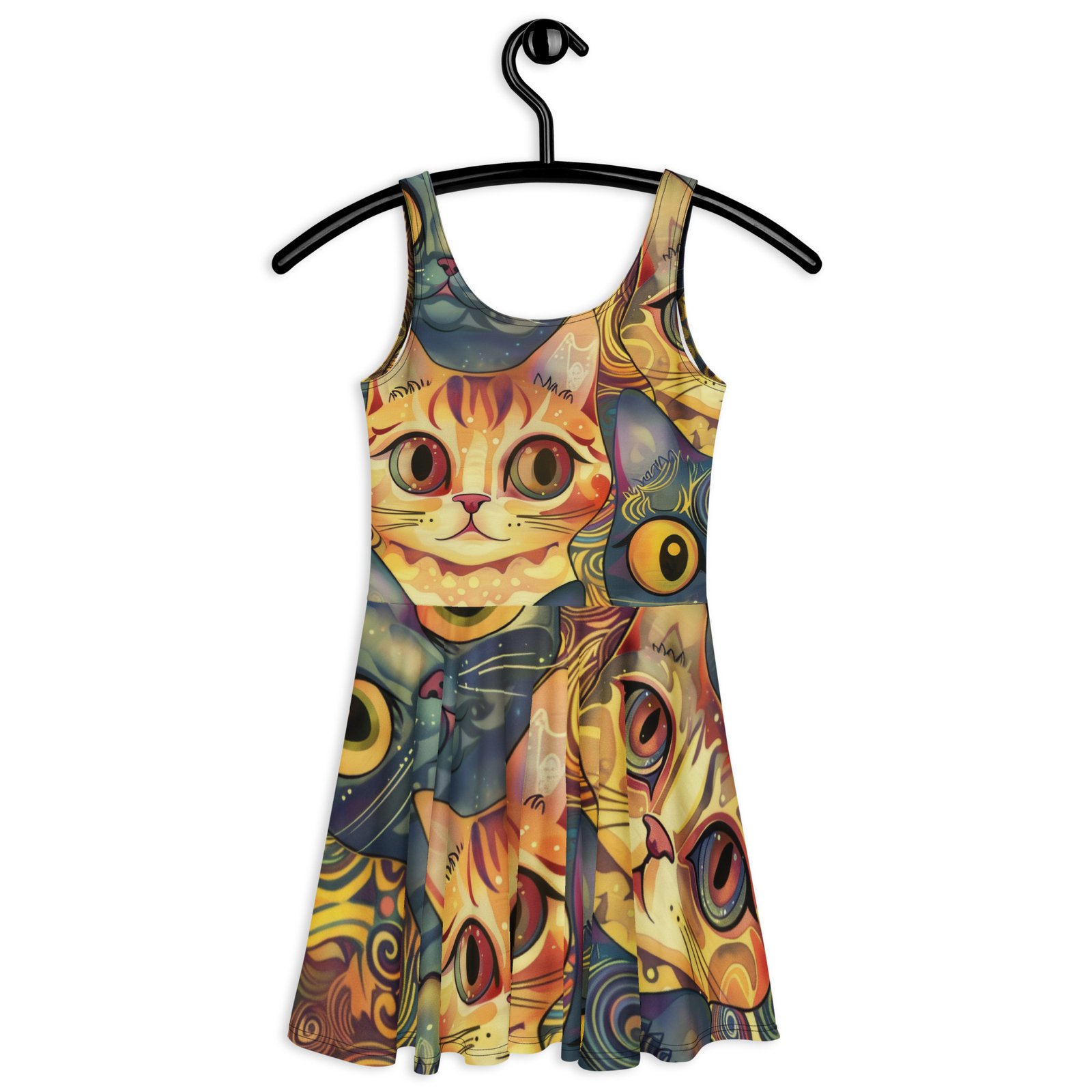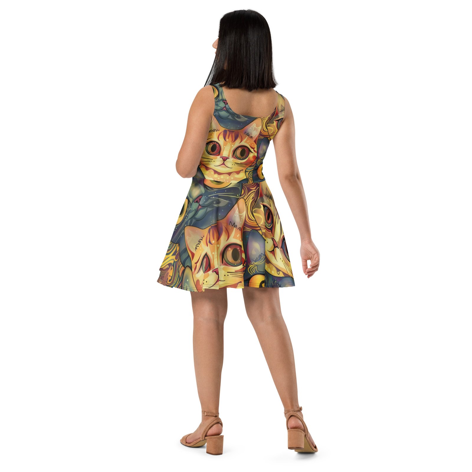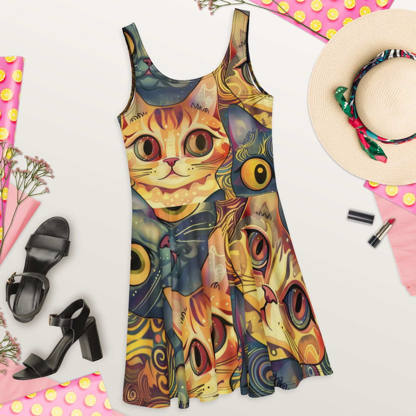 Îmbracă-te ca să impresionezi cu această rochie skater fără mâneci! Materialul moale și fusta evazată îi conferă o notă elegantă care scoate în evidență designul complex cu o vibranță frumoasă.