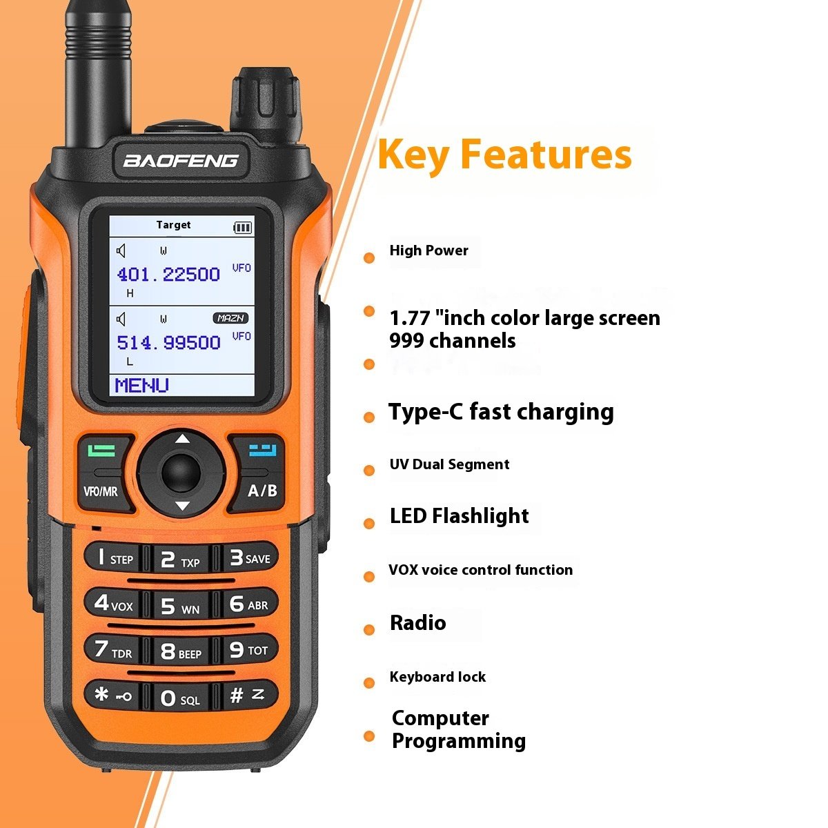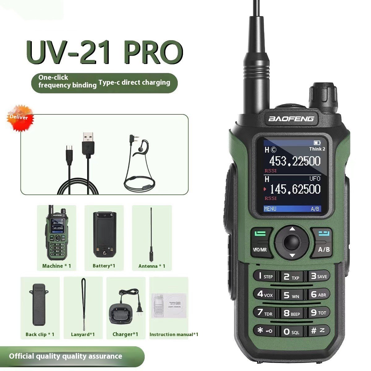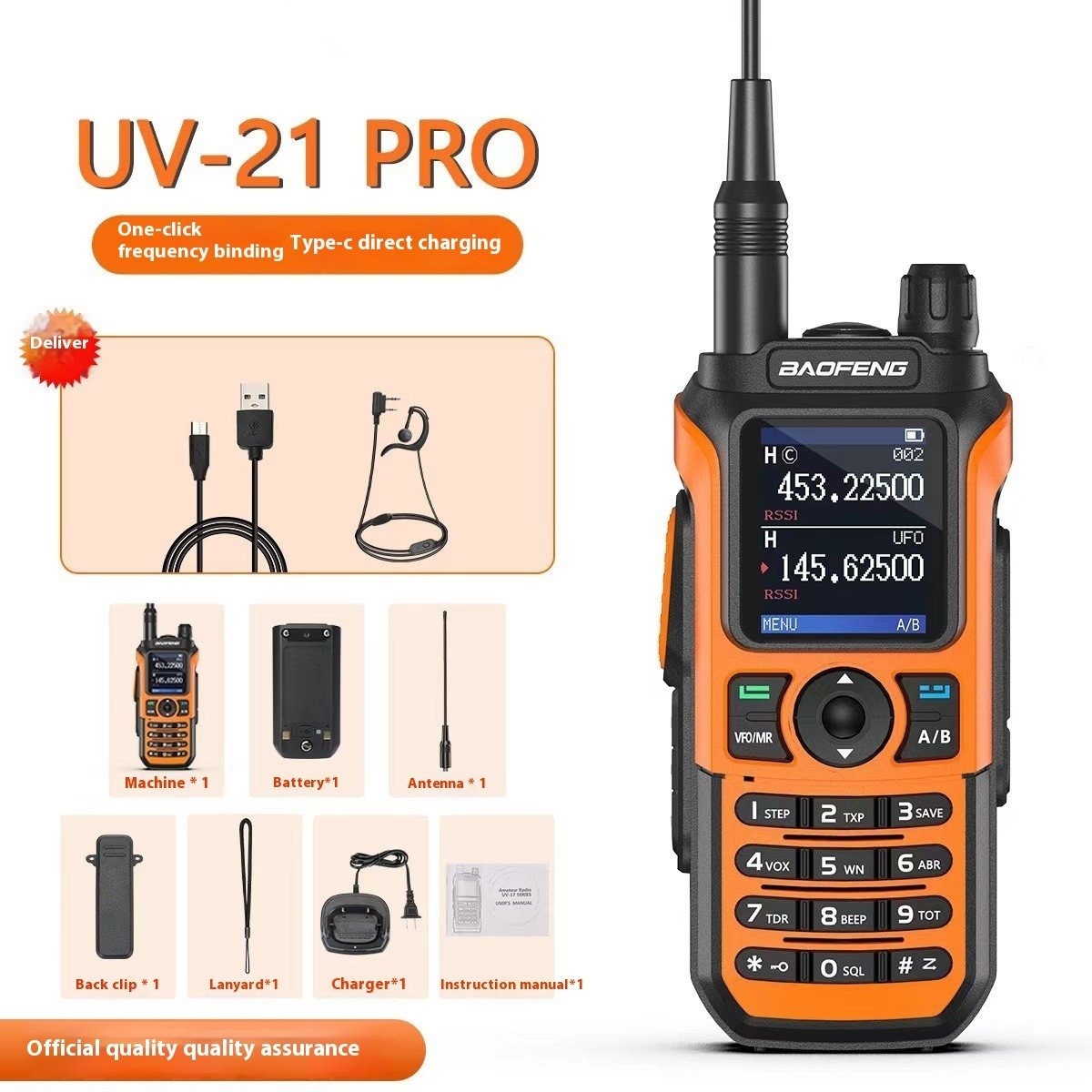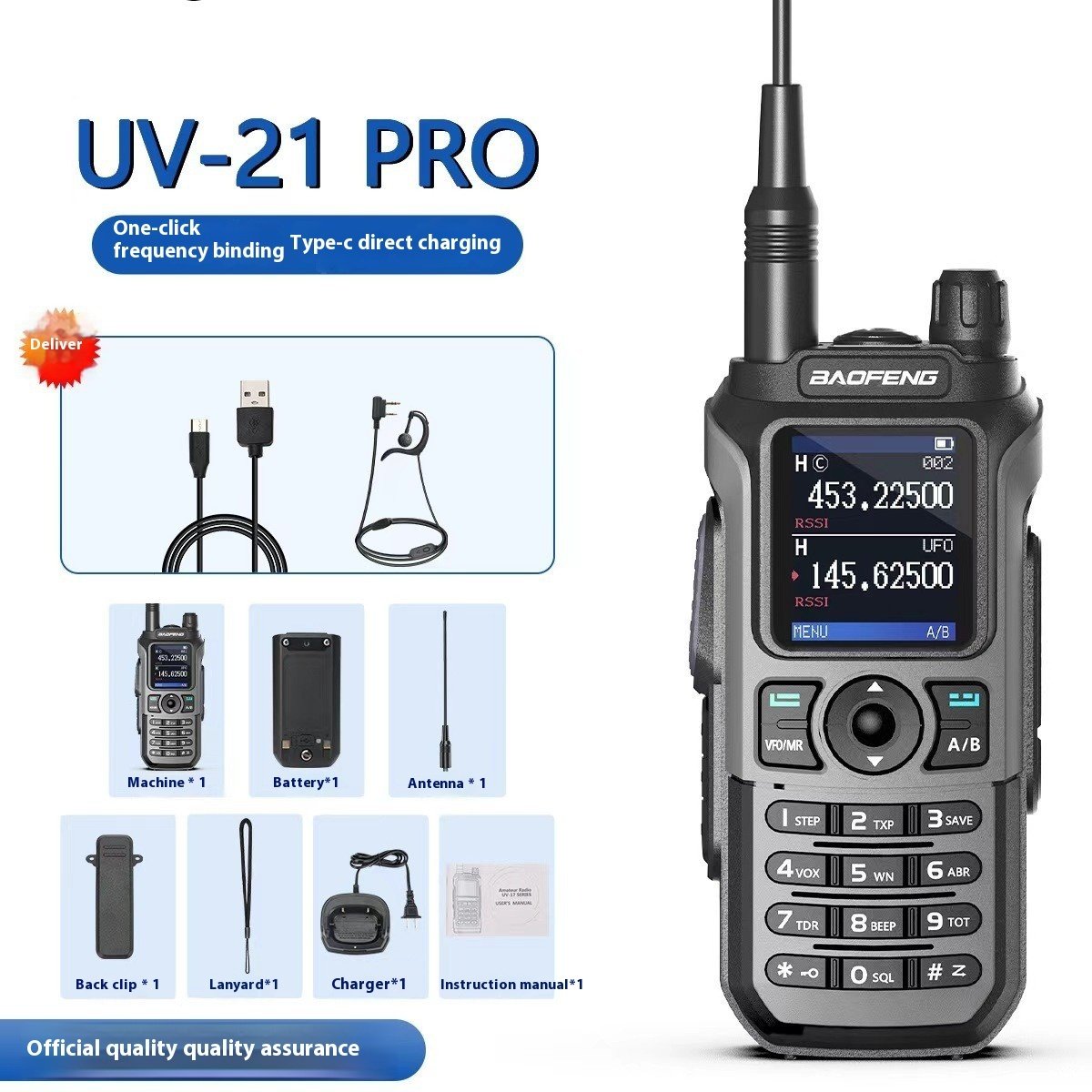 Aparat * 1 baterie * 1 antenă * 1 clemă spate * 1 frânghie de agățare * 1 încărcător * 1 manual de instrucțiuni * 1