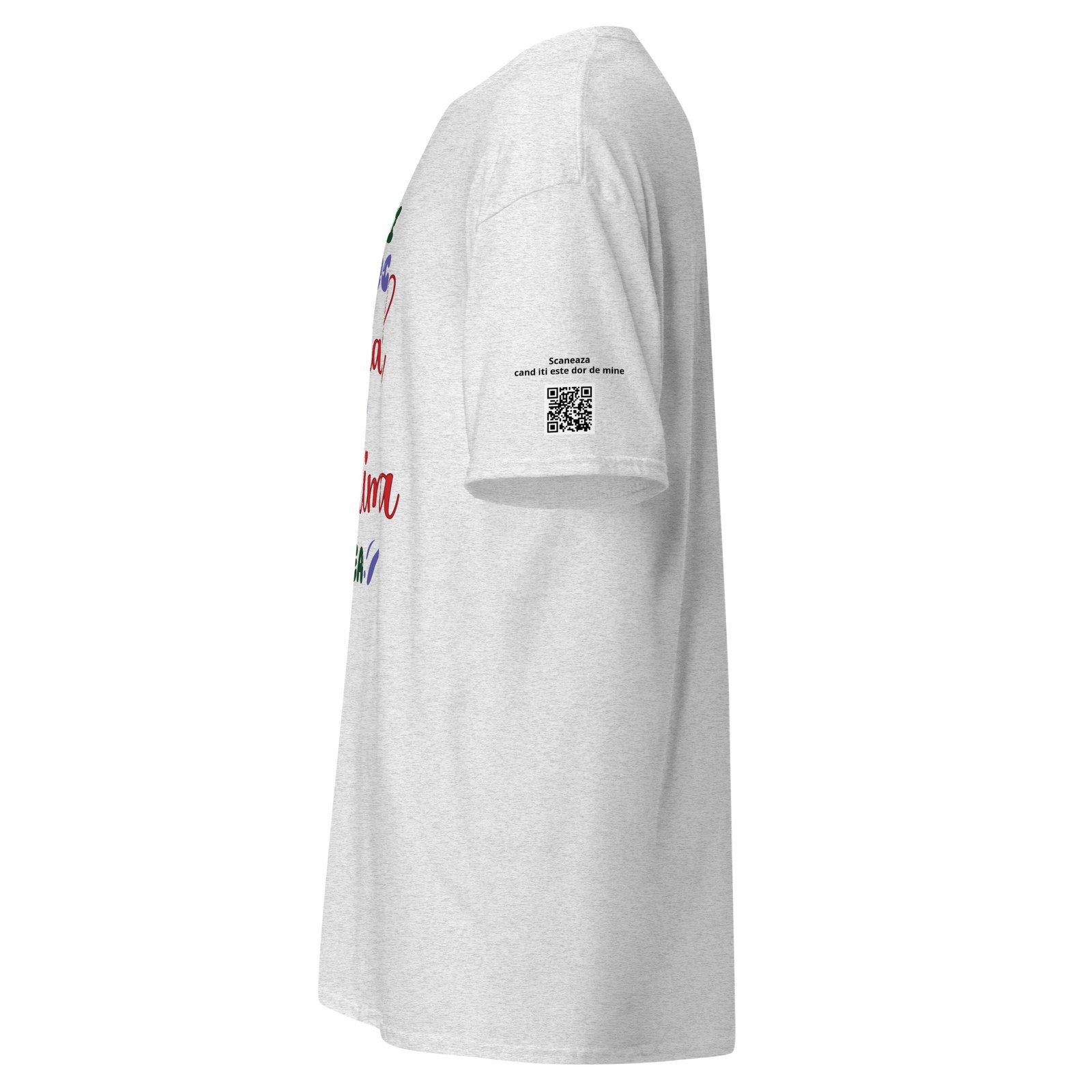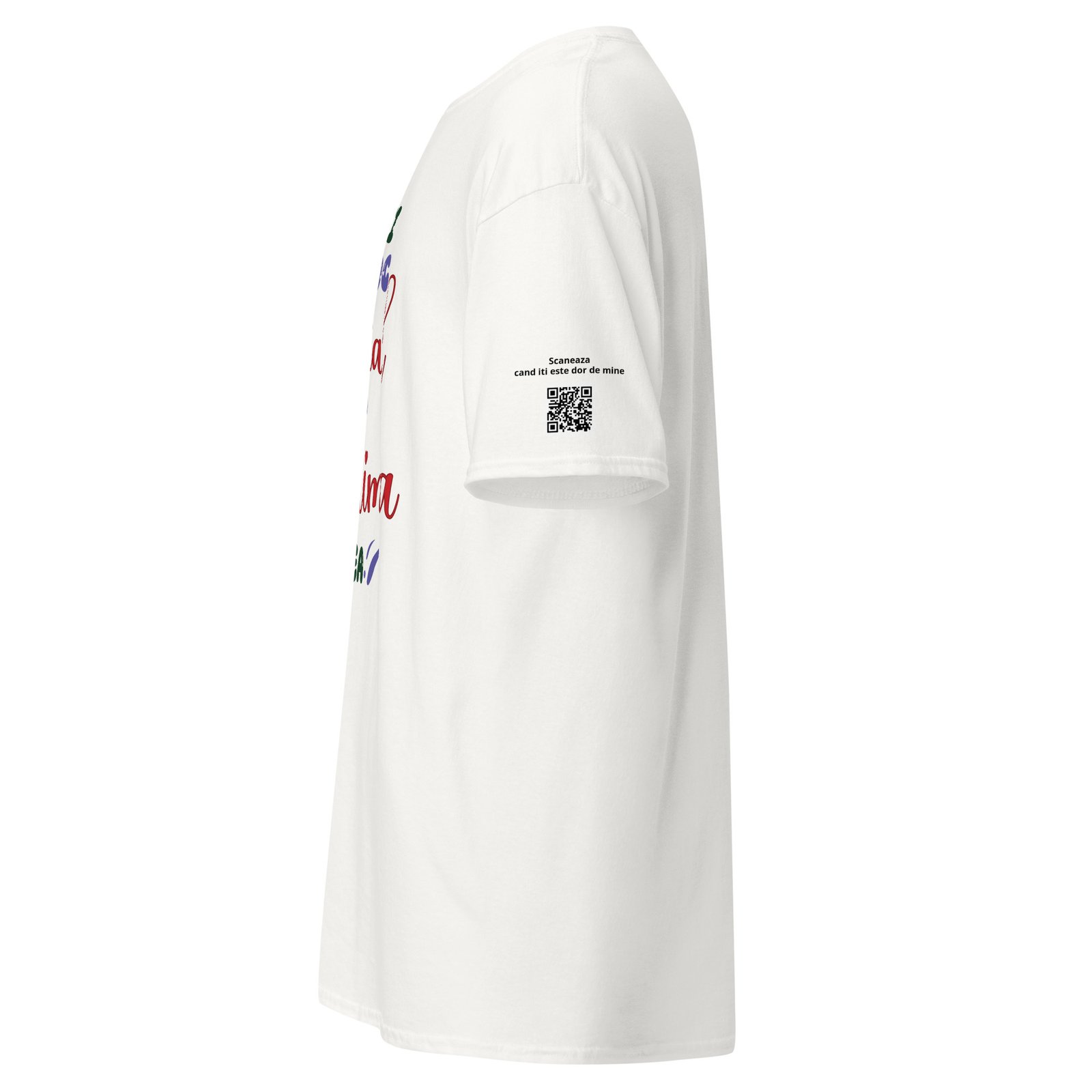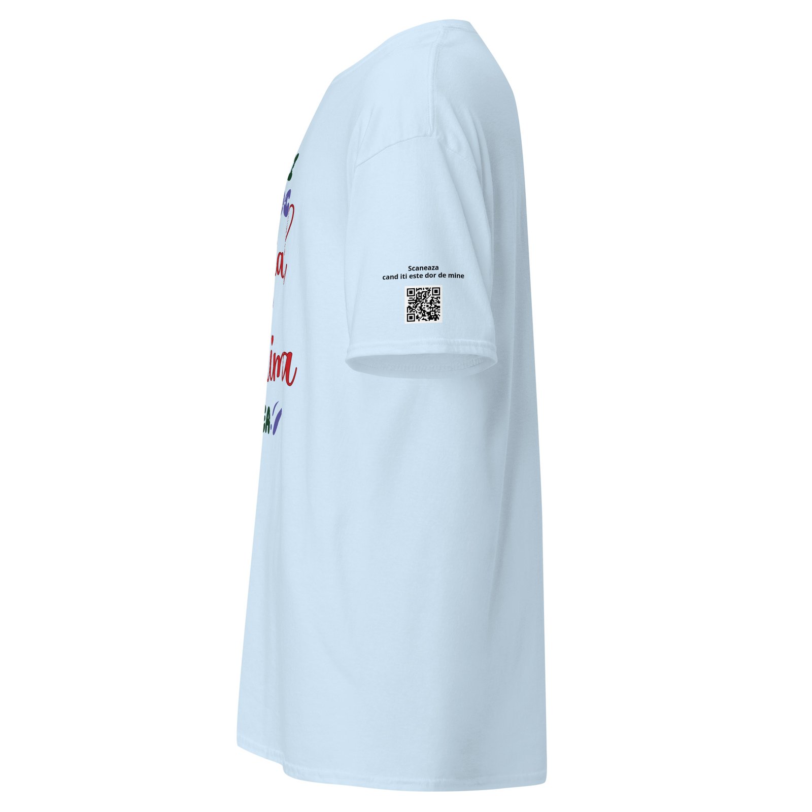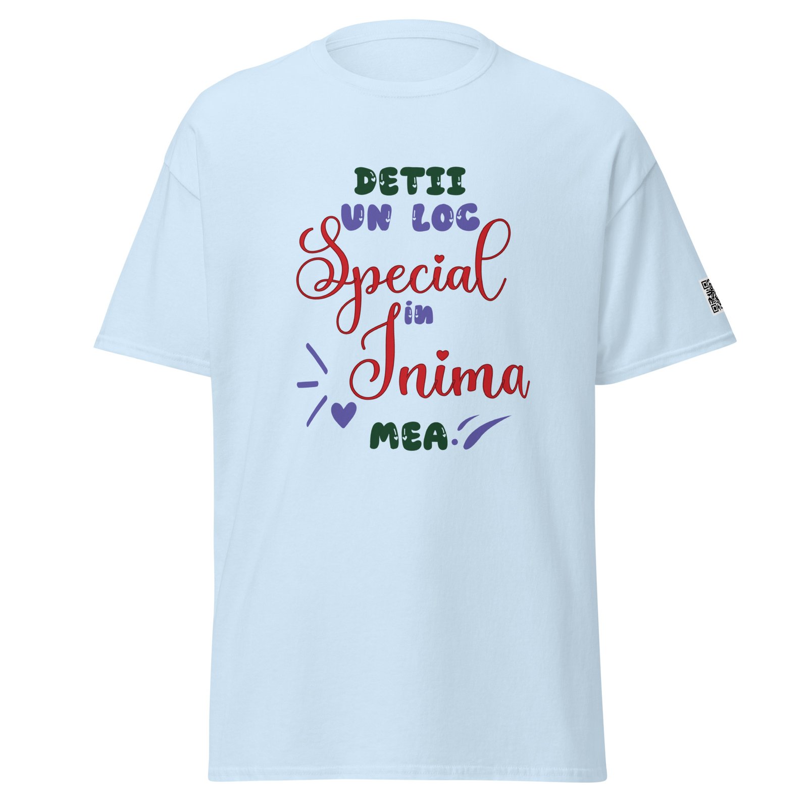 Dar acest tricou are și o surpriză: un cod QR personalizabil care ascunde mesajul tău. Când persoana dragă îl scanează, descoperă fie un text scris de tine, fie vocea ta, fie un video. E ca o scrisoare care nu se pierde niciodată — doar se scanează.