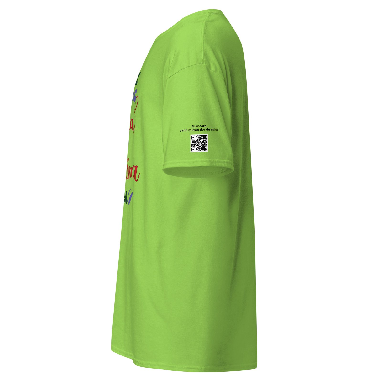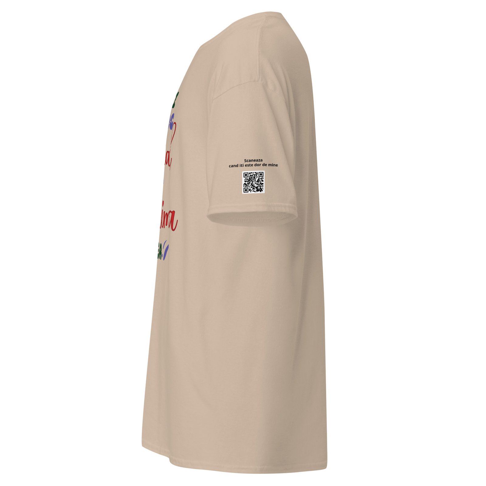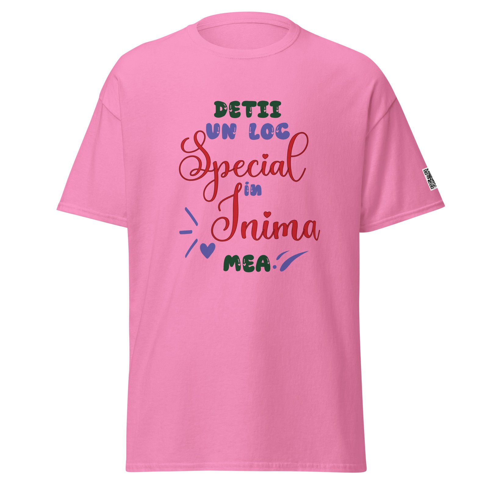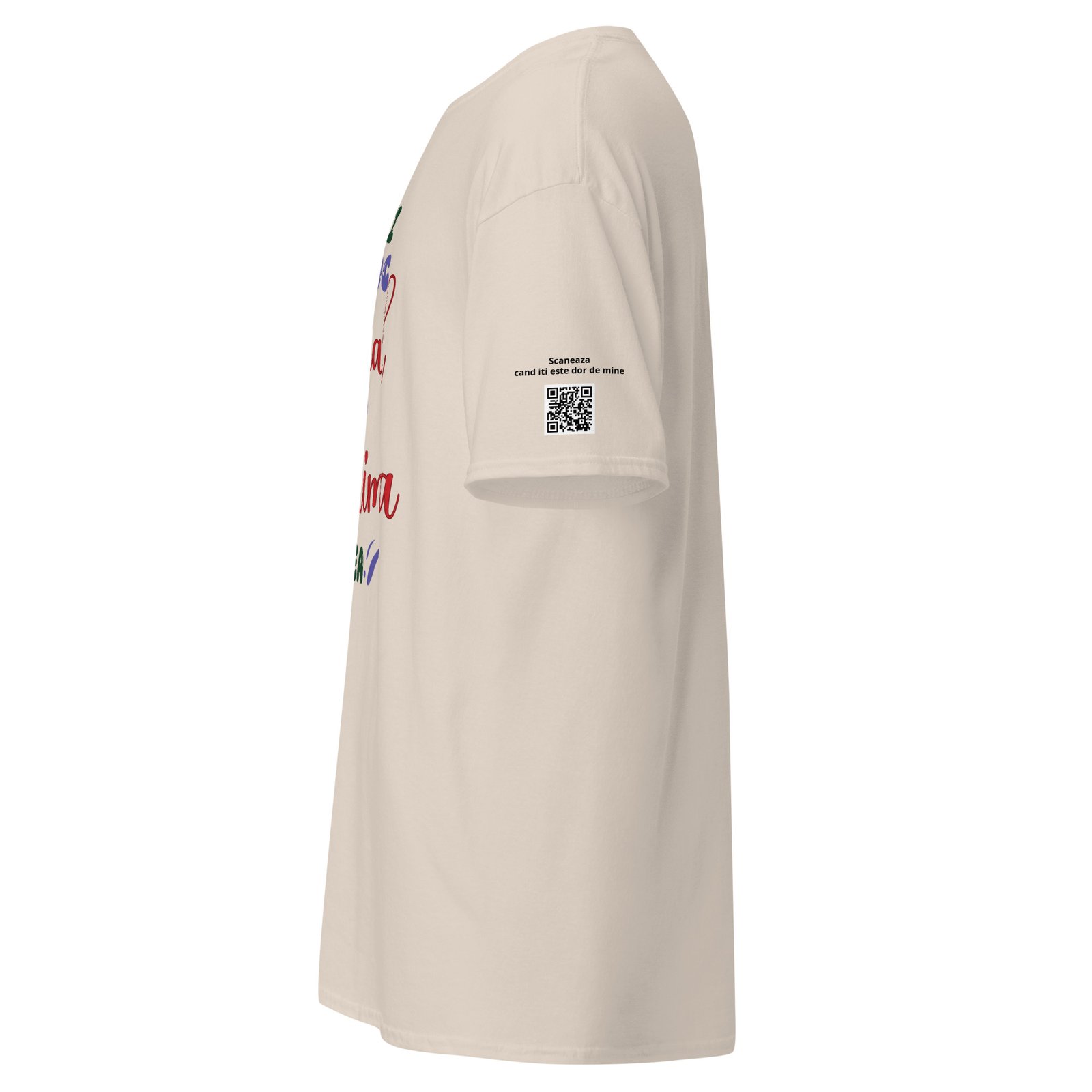 Dar acest tricou are și o surpriză: un cod QR personalizabil care ascunde mesajul tău. Când persoana dragă îl scanează, descoperă fie un text scris de tine, fie vocea ta, fie un video. E ca o scrisoare care nu se pierde niciodată — doar se scanează.